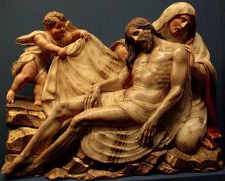 | Keywords: Piedad de Damián Forment.JPG Carmen Morte García dir y Margarita Castillo Montolar coord El esplendor del Renacimiento en Aragón Zaragoza Gobierno de Aragón; Museo de Bellas Artes de Bilbao; Generalitat Valenciana 2009 ISBN 978-84-8380-183-3 Catálogo de la Exposición http //www patrimonioculturaldearagon com/patr/editoravanzado cargafichero do ID 1543 Guía abreviada Piedad 1522-1525 de Damián Forment Alabastro dorado y policromado 40 x 50 x 20 cm Procede del Retablo de Santa Ana San Jerónimo y San Martín de la Catedral de Huesca Pertenece al Obispado de Huesca Obra expuesta en 2009 y 2010 en la exposición itinerante «El esplendor del Renacimiento en Aragón» en el Museo de Bellas Artes de Bilbao el Museo de Bellas Artes de Valencia y el Museo de Zaragoza ca Pietat de Damià Forment Alabastre daurat i policromat 1522-1525 Catedral d'Osca retaule de Santa Anna Sant Jeroni i Sant Martí Pietat_de_Damià_Forment JPG 2010-04-03 16 27 UTC Pietat_de_Damià_Forment JPG Joanbanjo derivative work Escarlati <span class signature-talk >talk</span> cropped and retouched Escarlati Pietat_de_Damià_Forment JPG own Joanbanjo </nowiki> Uploaded with derivativeFX Damián Forment Renaissance art in Spain Reliefs of Pietà in Spain 16th-century sculptures Forment Christianity in Spain |