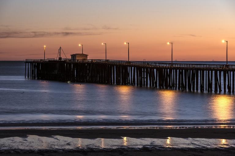 Keywords: pier ocean beach sea water sunset sky evening seascape jetty scenic wooden peaceful shore outdoor dock coastline pismo beach california usa