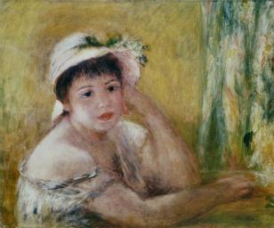| Keywords: Pierre-Auguste Renoir - Femme au chapeau de paille.jpg Artwork 1880 Oil on canvas cm 50 2 61 Private collection accession number object history credit line bottom right Renoir Renoir peintre du bonheur 1841-1919 de Gilles Néret Köln Taschen 2001 p 133 ISBN 9783822857410 PD-old-auto 1919 Paintings of women by Pierre-Auguste Renoir Females in art in three-quarter views Female arms Portrait paintings of women at bust length Women facing right in art Leaning people in art Females with white hats in art 1880 paintings Paintings by Pierre-Auguste Renoir in private collections Taken with Panasonic Lumix DMC-TZ2 Straw hats in art Renoir 1880s portrait paintings White female headgear in portrait paintings |
