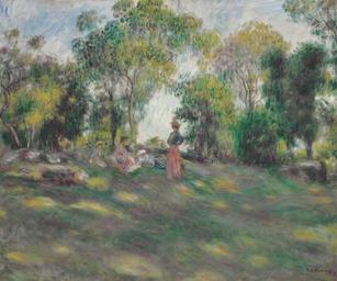 | Keywords: Pierre-Auguste Renoir - Paysage avec figures (ca.1890).jpg Artwork Creator Pierre-Auguste Renoir c 1890 oil on canvas cm 46 3 55 2 accession number object history Galerie Durand-Ruel et Cie Paris acquired from the artist 21 November 1893 <br/>Charles H Tweed New York acquired from the above 31 May 1905 <br/>Mrs Charles Tweed New York by descent from the above <br/>Mrs B D Chambers Westover Rectory Toxbury Virginia by descent from the above by 1937 <br/>Richard Palmer Kaleioku Smart Honolulu <br/>Hirschl Adler Gallery New York acquired from the above 1983 <br/>Private collection acquired from the above 1984 ; sale Sotheby's New York 3 May 2005 lot 55 <br/>Acquired by the late owner 2009 credit line exhibition history Paris Galerie Durand-Ruel et Cie Monet Pissarro Renoir et Sisley April 1899 p 12 no 100 titled Paysage avec Figures and dated 1895 <br/>Boston Museum of Fine Arts 1917-1928 on extended loan Renoir ~ lower right signature Renoir Catalogue raisonné des tableaux pastels dessins et aquarelles no 949 christies online 5840852 2888 9 New York 5 November 2014 PD-old-auto-1923 1919 Paintings by Pierre-Auguste Renoir 1890s landscape paintings |