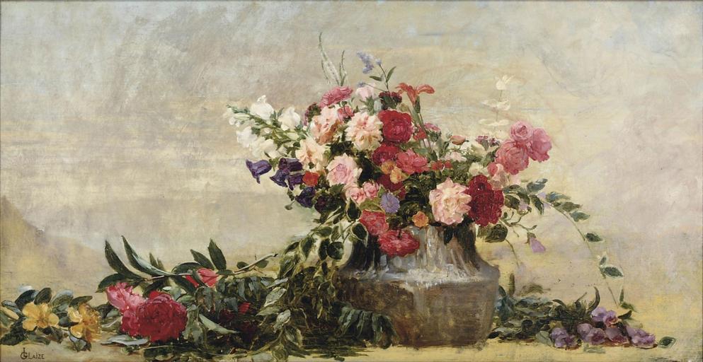 | Keywords: Pierre Paul-Léon Glaize - A flower bouquet.jpg Pierre-Paul-Léon Glaize 1842-1932 date oil canvas cm 52 7 100 3 accession number object history credit line exhibition history LGlaize ~ lower left signature christies online 5418939 2430 134 New York 5 - 6 April 2011 PD-old-auto-1923 1932 DEFAULTSORT Glaize Leon; Still-life flower bouquet; christies 2011 Pierre-Paul-Léon Glaize Still life paintings of flowers | ||||