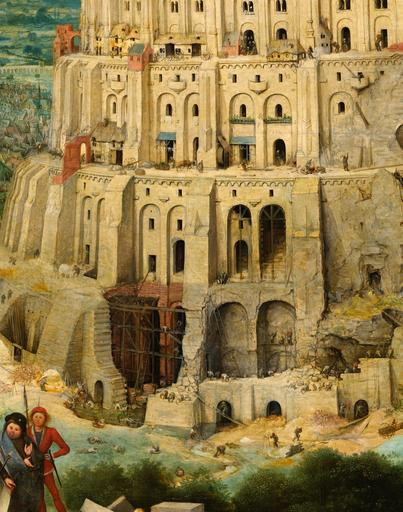 | Keywords: Pieter Bruegel d. Ä. 113.jpg LargeImage Artwork de Turmbau zu Babel Detail Oil Oak panel cm 114 155 de Wien de Kunsthistorisches Museum Gemäldegalerie de Sogenannter Großer Turmbau zu Babel vgl Version in Rotterdam Signatur Bez unten auf einem Quader BRVEGEL FE M CCCCC LXIII Inv -Nr GG_1026 Provenienz 1566 Nicolaas Jongelinck; wohl 1566 in den Besitz der Stadt Antwerpen übergegangen; Rudolf II ; Slg Leopold Wilhelm Cropped/stitched curves adjusted and downscaled from the following images <gallery> File Pieter Bruegel the Elder - The Tower of Babel Vienna - Google Art Project-x0-y0 jpg File Pieter Bruegel the Elder - The Tower of Babel Vienna - Google Art Project-x1-y0 jpg File Pieter Bruegel the Elder - The Tower of Babel Vienna - Google Art Project-x0-y1 jpg File Pieter Bruegel the Elder - The Tower of Babel Vienna - Google Art Project-x1-y1 jpg </gallery> 1563 Creator Pieter Bruegel d Ä PD-old-100 Other versions 100px Details of The Tower of Babel by Pieter Bruegel the Elder Vienna |