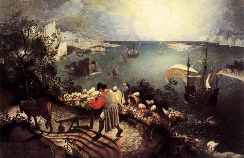 | Keywords: Pieter Bruegel the Elder - Landscape with the Fall of Icarus - WGA03322.jpg ca 1555 Oil canvas wood size cm 74 112 Institution Musées Royaux des Beaux-Arts Brussels object history credit line accession number WGA link 3322 http //www wga hu/art/b/bruegel/pieter_e/01/02icarus jpg http //www wga hu/html/b/bruegel/pieter_e/01/02icarus html PD-old-100 painting landscape Netherlandish 1501-1550 Landscape with the Fall of Icarus WGA form painting WGA type landscape WGA School Netherlandish WGA time period 1501-1550 |