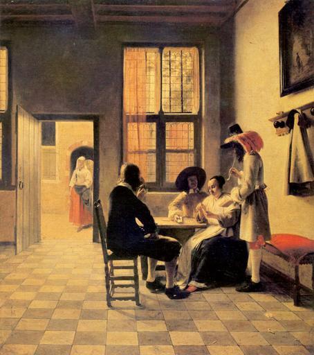 | Keywords: Pieter de Hooch 014.jpg Artwork creator Pieter de Hooch Title Cardplayers in a Sunlit Room Kartenspieler in einem sonnendurchfluteten Raum Kaartspelers in een zonovergoten kamer 1658 oil canvas cm 77 2 67 4 London RCIN 405951 Institution Royal Collection Windsor http //www royalcollection org uk/collection/405951 Royal Collection Windsor object history Purchased by George IV in 1825 credit line ~ signature and date Yorck http //mail wikipedia org/pipermail/wikide-l/2005-April/012195 html Other versions 100px PD-old-100 PD-Art-YorckProject Cardplayers in a Sunlit Room |