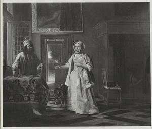 | Keywords: Pieter de Hooch - Man with a glass and a jug and a woman lacing het bodice.jpg Artwork creator Pieter de Hooch Title Man with a glass and a jug and a woman lacing het bodice Man met glas en kruik en vrouw die haar lijfje dichtrijgt 1665 gedateerd 247991 ca 1665 oil canvas cm 90 108 unknown Private collection P C Sutton Pieter de Hooch Oxford 1980 cat no 69 ; C Hofstede de Groot Beschreibendes und Kritisches Verzeichnis der Werke der Hervorragendsten Hollandischen Maler des XVII Jahrhunderts vol I Paris 1907 cat no 179 object history credit line https //rkd nl/explore/images/247991 Other versions PD-old-100 Genre paintings by Pieter de Hooch 1665 paintings |