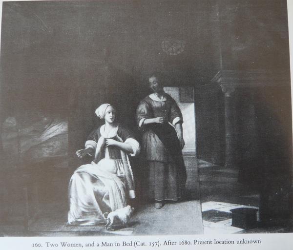| Keywords: Pieter de Hooch - Two Women and a Man in Bed.jpg Artwork creator Pieter de Hooch Title Two Women and a Man in Bed ca 1680 “1684 oil canvas cm 70 82 unknown Private collection P C Sutton Pieter de Hooch Oxford 1980 cat no 157 ; C Hofstede de Groot Beschreibendes und Kritisches Verzeichnis der Werke der Hervorragendsten Hollandischen Maler des XVII Jahrhunderts vol I Paris 1907 cat no 85 object history credit line Own Pieter de Hooch Complete Edition by Peter C Sutton Phaidon Press Oxford 1980 ISBN 0714818283 Other versions PD-old-100 Genre paintings by Pieter de Hooch 1680s paintings |