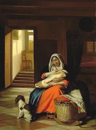 | Keywords: Pieter de Hooch - Woman nursing by a cradle with a dog at her feet.jpg Artwork creator Pieter de Hooch Title Mother Nursing Her Child Moeder die haar kind de borst geeft 1674-1676 oil canvas cm 79 7 59 7 Detroit 89 39 Institution Detroit Institute of Arts P C Sutton Pieter de Hooch Oxford 1980 cat no 113 object history Paris Collection Comte Montgermont; Detroit Collection James E Scripps by whom given to the DIA in 1889 credit line Gift of James E Scripps https //www pinterest com/pin/390265123932355283/ Other versions http //www dia org/object-info/ffceeaca-95df-4c43-89a5-07bb4dc89069 aspx position 1 PD-old-100 Genre paintings by Pieter de Hooch 1670s paintings Dutch paintings in the Detroit Institute of Arts |