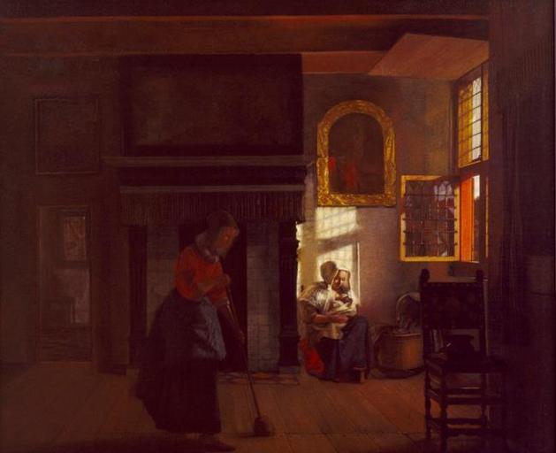 Keywords: Pieter de Hooch - Woman and child by a window, with a maid sweeping.jpg Artwork creator Pieter de Hooch Title Woman and child by a window with a maid sweeping Interieur met twee pratende vrouwen een man en een hond 17de eeuw na ca 1665 248029 ca 1655 “1658 oil canvas cm 65 80 London 37 The Wernher Collection Ranger's House P C Sutton Pieter de Hooch Oxford 1980 cat no 74 ; C Hofstede de Groot Beschreibendes und Kritisches Verzeichnis der Werke der Hervorragendsten Hollandischen Maler des XVII Jahrhunderts vol I Paris 1907 cat no 87 object history credit line https //rkd nl/explore/images/248029 Other versions PD-old-100 Genre paintings by Pieter de Hooch 1650s genre paintings Julius Wernher Collection |