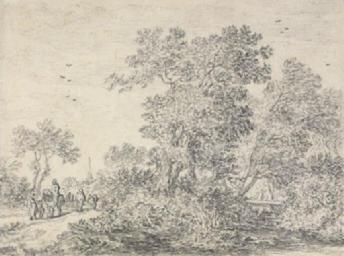| Keywords: Pieter de Molijn - Trees on a rise with travelers on a road.jpg Trees on a rise with travelers on a road 14 6x19 4cm black chalk grey wash pen and black ink brown ink framing lines fragmentary watermark fool's cap http //www christies com/LotFinder/lot_details aspx intObjectID 5032106 Christie's 1654 creator Pieter de Molyn PD-Art-100 Pieter de Molijn | ||||