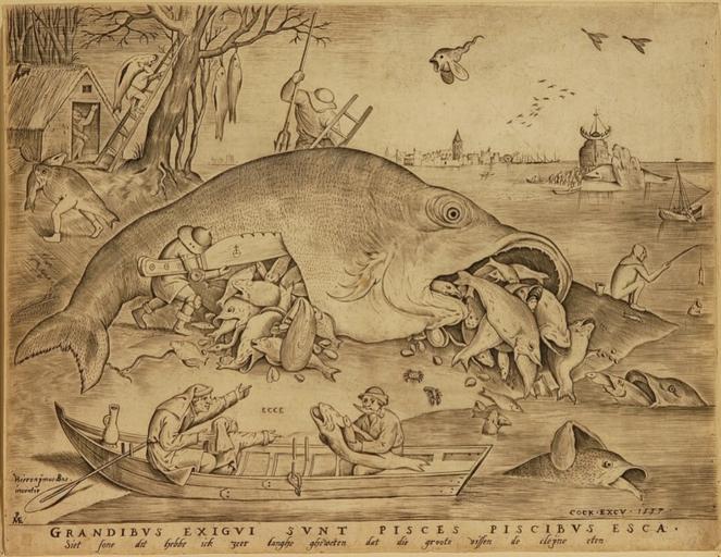 | Keywords: Pieter van der Heyden 009 Noordbrabants Museum.jpg engraving cm 22 8 29 5 Institution Noordbrabants Museum accession number 15391 ECCE center la Hieronijmus Bos / inuentor signature bottom left la P / ME monogram bottom left ~ COCK · EXCV · 1557 signature and date bottom right la GRANDIBVS EXIGVI SVNT PISCES PISCIBVS ESCA caption bottom la Siet sone dit hebbe ick zeer langhe gheweten dat die groote vissen villen de cleÿne eten bottom caption odt www hetnoordbrabantsmuseum nl http //www hetnoordbrabantsmuseum nl Home http //www hetnoordbrabantsmuseum nl/collectie/zoeken-in-de-collectie/ Info Creator Pieter van der Heyden Pieter Bruegel I LangSwitch Published by Uitgegeven door Hieronymus Cock 1557 Pieter Bruegel the Elder - Big Fish Eat Little Fish 1556 - Google Art Project jpg Original Pieter van der Heyden 009 Museum Boijmans Van Beuningen version 01 jpg Version at the Museum Boijmans Van Beuningen Rotterdam Pieter van der Heyden 009 New Haven version 01 jpg Version at the Yale University Art Gallery Object history by 1967 Provinciaal Genootschap van Kunsten en Wetenschappen in Noord-Brabant 's-Hertogenbosch Exhibition history black and white image 234 Hieronijmus Bos inventor PAME Pieter van der Heyden sculpsit Cock excu De grote vissen eten de kleine vissen 15391 Hieronymus Cock; Pieter Bruegel de Oude; Pieter van der Heyden Grote vissen eten kleine vissen PD-old-100 Big Fish Eat Little Fish 1556 after Pieter Bruegel the Elder Fish Pieter van der Heyden 1557 Prints published by Hieronymus Cock 16th-century engravings Prints in the Noordbrabants Museum Heyden Pieter Van Der 1557 |