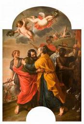 | Keywords: Pieter van Lint - St Paul and St Peter.jpg Artwork creator Pieter van Lint en St Paul and St Peter say goodbye 1655 http //barokinvlaanderen vlaamsekunstcollectie be/nl/nieuws/expo-de-andere-verbeeld-verbeeld-gevaar Oil canvas cm 278 188 Institution Sint-Jacobskerk Antwerp Other versions PD-old-100 Pieter van Lint Interior of Sint-Jacobskerk Antwerp 17th-century paintings of Saint Peter Paintings of Saint Paul 1655 paintings departing in art | ||||