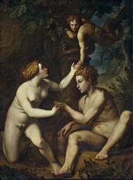 | Keywords: Pietro Facchetti - Adamo ed Eva ricevono dal frutto proibito.jpg after Copia de Francesco Salviati 1554 oil canvas cm 174 130 institution Prado not on view accession number P00518 object history Colección Real Palacio del Buen Retiro Madrid 1701 s n ; Buen Retiro 1794 nº 819 credit line exhibition history https //www museodelprado es/coleccion/galeria-on-line/galeria-on-line/obra/adan-recibiendo-de-eva-el-fruto-prohibido/ Museo Nacional del Prado Madrid PD-old-100 Pietro Facchetti Italian paintings in the Museo del Prado 16th-century paintings in the Prado Museum 16th-century paintings of Adam and Eve |