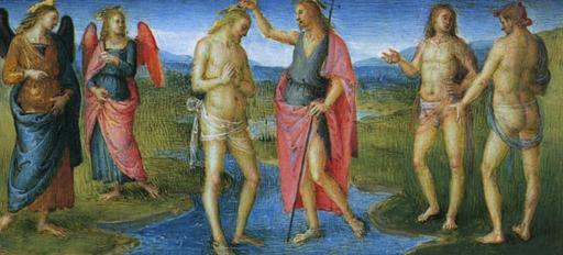 | Keywords: Pietro Perugino cat77c.jpg Artwork creator Pietro Perugino ca 1507 Tempera Oil panel cm 17 1 36 6 Galleria nazionale dell'Umbria Perugia object history credit line Cat no 77 in Vittoria Garibaldi Perugino Catalogo completo Octavo Firenze 2000 ISBN 88-8030-091-1 accession number Vittoria Garibaldi Perugino Silvana Milano 2004 ISBN 88-8215-813-6 Reproduction of a painting that is in the public domain because of its age PD-old-100 Galleria nazionale dell'Umbria Perugia Paintings of the baptism of Jesus Christ Oil paintings of people 1500s paintings in Italy 16th-century paintings of the baptism of Jesus Christ Tempera on panel 16th-century oil on canvas paintings in Italy |