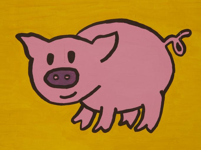 Keywords: pig cartoon character drawing funny image animal fig pink curly tail