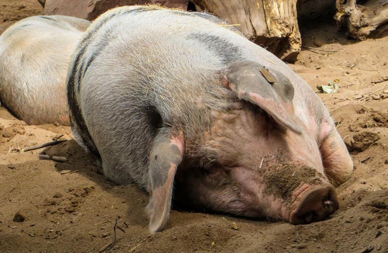 Keywords: pig domestic pig farm agriculture wallow sleep happy