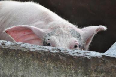 Keywords: pig peeking farm animal hiding embarrassed