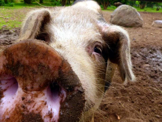 Keywords: pig sow mammal livestock animals nature dirty agriculture domestic pig farm animal portrait head luck fur symbol of good luck lucky charm animal world