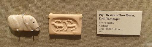 | Keywords: Pig stamp seal with design of Two Ibexes, drill technique, Khafajah, Uruk, 4000-3100 BC, brown marble - Oriental Institute Museum, University of Chicago - DSC07205.JPG en Exhibit in the Oriental Institute Museum University of Chicago Chicago Illinois USA This work is old enough so that it is in the public domain Photography was permitted in the museum without restriction 2014-08-22 14 49 08 own Daderot other versions cc-zero Uruk Period stamp seals in the Oriental Institute Museum Uploaded with UploadWizard |