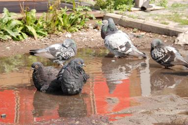 Keywords: pigeon bird bath water mud summer hot