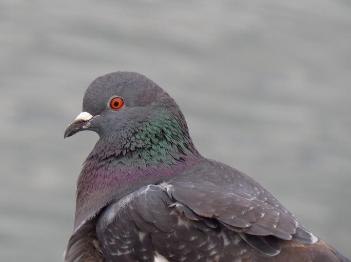 Keywords: pigeon bird grey dove nuisance feathers head animal wild wildlife tame blue green