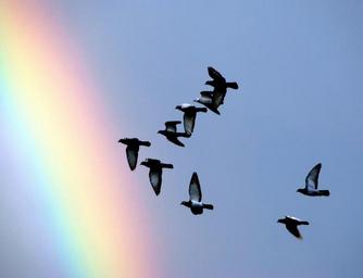 Keywords: pigeons screen after the storm flight freedom birds after the rain sky cooperation rainbow