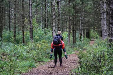 Keywords: piggy back women girls hiker backpacker trek path adventure forest woods trees autumn fall leaves sisters friends companion lifestyle active