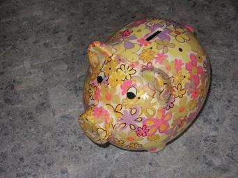 Keywords: piggy bank colorful retired pig save color contrast anxious shy