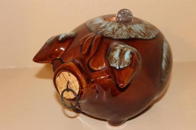 Keywords: piggy bank old corky pig savings banks money finance coin pig deposit earnings banking cash