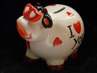 Keywords: piggy bank savings bank cow heart love glasses cool ceramic save money slot funny