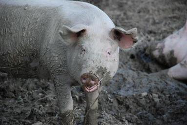Keywords: pigs animals mammal sow happy pig nature livestock dirty agriculture farm domestic pig paarhufer