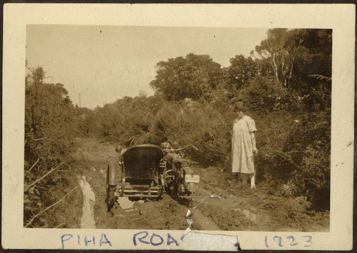 Piha_Road,_Motorcycle_and_sidecar,_Margaret_Laurie_(Nee_McNeil)_1923_/_WRD_Laurie.jpg (1835x1300)