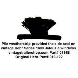 | Keywords: Most late 50s and early 60s vintage trailers used Hehr Jalousie windows. The plastic backing of this pile weatherstrip is identical to the width and thickness of the original aluminum-backing. vintagetrailershop.com Part# 0114E Original Hehr Part# 010-122 |