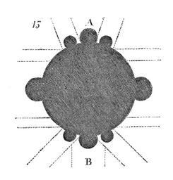 | Keywords: Pilier.XIIIe.siecle.png Vers le milieu du XIII<sup>e</sup> siècle déjà on faisait descendre les colonnettes des arcs ogives des grandes voûtes jusqu'à la base même du pilier; puis bientôt on voulut porter les arcs ogives des voûtes des collatéraux sur des colonnettes spéciales; les piliers prirent donc la section donnée par la figure 15 A étant le côté faisant face à la grande nef et B la partie du pilier en regard du collatéral Dès l'instant que l'on admettait que les arcs ogives comme les archivoltes et les arcs-doubleaux devaient posséder leur colonnette montant de fond il était logique d'admettre que les formerets eux-mêmes possédassent leurs supports verticaux et même que les membres de ces nefs de voûtes eussent chacun un point d'appui spécials About the middle of the XIII E century already the posts were reduced from the arch ogives of the large vaults until the base even of the pillar; then soon one wanted to carry the arch ogives of the collateral vaults on special posts; the pillars thus took the section given by figure 15 With being the side dealing with the great nave and B the part of the pillar compared to the collateral one As of the moment that one admitted that the arch ogives like the archivolts and the transverse ribs were to have their basic post going up it was logical to admit that the formerets themselves had their vertical supports and even as the members of these naves of vaults each one had a special point of support Viollet-le-Duc Pillar Viollet-le-Duc |