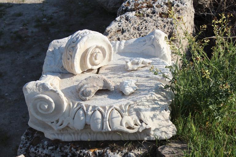 Keywords: pillar socket transient white ruin broken at that time decay old greek beautiful weathered