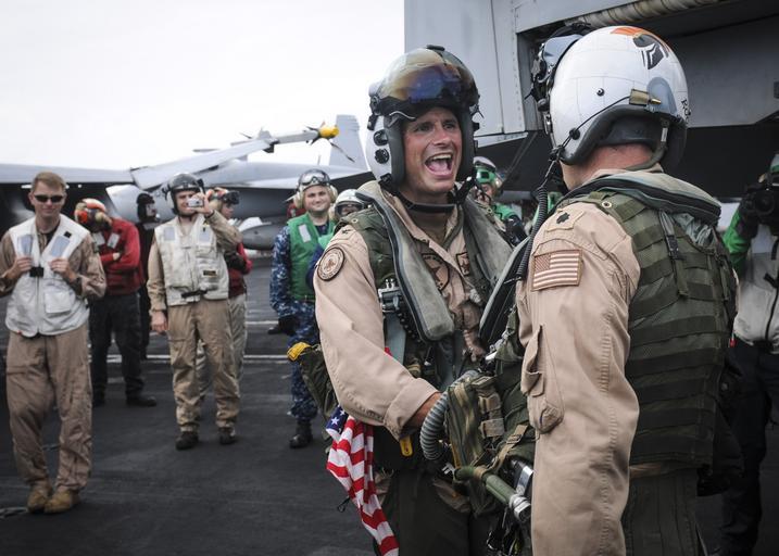 Keywords: Pilots complete 1,000th trap aboard USS Nimitz. (9623226700).jpg GULF OF OMAN Aug 28 2013 Capt Rob Osterhoudt deputy commander of Carrier Air Wing CVW 11 left and Cmdr Robert Loughran commanding officer of the Argonauts of Strike Fighter Squadron VFA 147 congratulate each other aboard the aircraft carrier USS Nimitz CVN 68 upon each completing their 1 000th carrier arrested landing or trap The Nimitz Carrier Strike Group is deployed to the U S 5th Fleet area of responsibility conducting maritime security operations theater security cooperation efforts and support missions for Operation Enduring Freedom U S Navy photo by Mass Communication Specialist 2nd Class Ryan J Mayes/Released 130828-N-RC246-436 Join the conversation http //www facebook com/USNavy www facebook com/USNavy http //www twitter com/USNavy www twitter com/USNavy http //navylive dodlive mil navylive dodlive mil http //www flickr com/photos/usnavy/9623226700/ Pilots complete 1 000th trap aboard USS Nimitz 2013-08-28 03 21 http //www flickr com/people/56594044 N06 Official U S Navy Page from United States of America MC2 Ryan J Mayes/U S Navy Attribution License XMP-photoshop Instructions Navy Visual News Service PD-USGov-Military-Navy Official U S Navy Imagery http //flickr com/photos/56594044 N06/9623226700 2014-04-03 12 50 21 cc-by-2 0 Images from US Navy location Gulf of Oman Naval officers of the United States USS Nimitz CVN-68 flight deck Files uploaded by Russavia Files uploaded by Russavia Strike Fighter Squadron 147 United States Navy Robert R Osterhoudt |