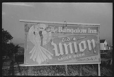 | Keywords: PilottownBungaloInnSign.jpg Sign Pilottown Louisiana 1938 Photo by Russell Lee for the Farm Security Administration; transfered to Office of War Information Photograph Collection and then to Library of Congress; downloaded via http //hdl loc gov/loc pnp/fsa 8a24453 1938-09 Creator Russell Lee PD-USGov 1938 in Louisiana Pilottown Louisiana Billboards in Louisiana Beers of the United States Russell Lee | ||||