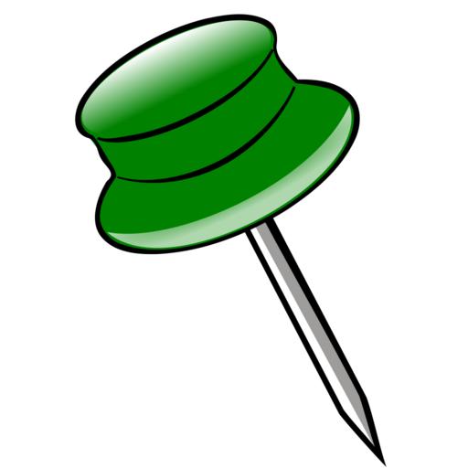 Keywords: pin green office notice tack thumbtack round shape pushpin needle point push button