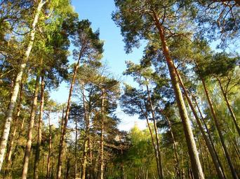 Keywords: pine pine trees trees low angle shot himmeblau forest nature spring up pine forest
