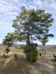Keywords: pine tree mood landscape back light clouds sky