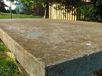 Keywords: Ping pong table 02.JPG en An old concrete ping pong table in Bystrc This one is from 1970s own own photo HTO 2005-05-24 Table tennis tables