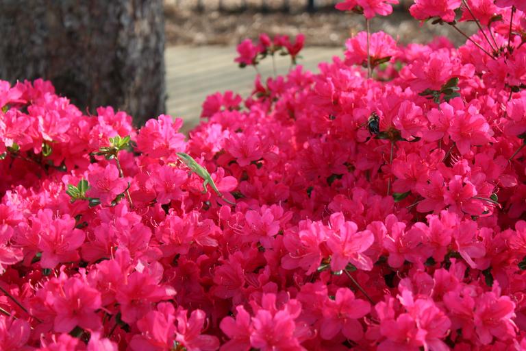 Keywords: pink flowers lizard green contrast beauty spring nature colorful bright vibrant gecko