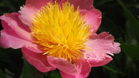 Keywords: pink yellow flower pink flower blossom bright color floral vibrant colorful colour petal yellow center