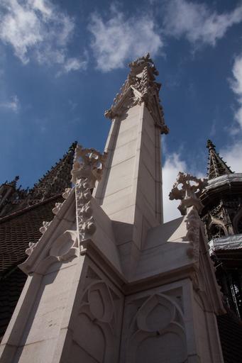 Keywords: pinnacles stone chiseled slim pointed turret gothic architecture superelevation buttresses aesthetic function static construction weight stabilize achteckiger shank leib tracery ornament middle section finial cornice crabs pyramidal peak east tower main tower münster ulm cathedral building church ulm city