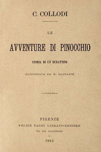 | Keywords: Pinocchio by Collodi, first edition Paggi 1883.jpg en first page of the book Pinocchio by Carlo Collodi Felice Paggi libraio editore Firenze 1883 http //ve torontopubliclibrary ca/pinocchio/1st html author 1883 Carlo Collodi Pinocchio PD-old-100 |