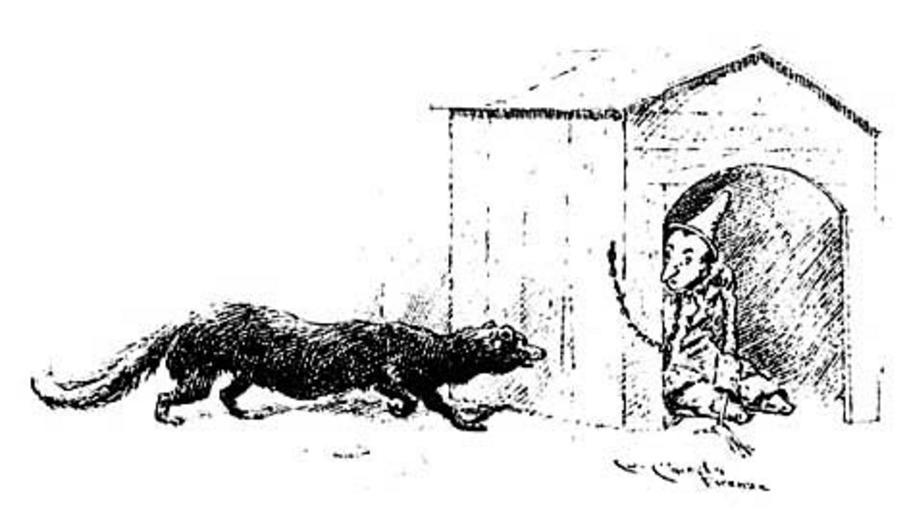 | Keywords: PinocchioChiostri21.jpg it Pinocchio costretto a fare il cane da guardia incontra le faine Illustrazione di Carlo Chiostri 1863 - 1939 dal libro di Collodi Le avventure di Pinocchio 1901 Scan of a book Collodi Le avventure di Pinocchio 1901 Carlo Chiostri 1863 - 1939 1901 Carlo Chiostri Le avventure di Pinocchio PD-old |