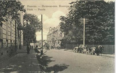 Keywords: Pinsk, Vialikaja. Пінск, Вялікая (1900).jpg Пінск Pinsk вуліца Вялікая vulica Vialikaja Пошта www pinskjews org il author < 1914 PD-old-70 History of Pinsk