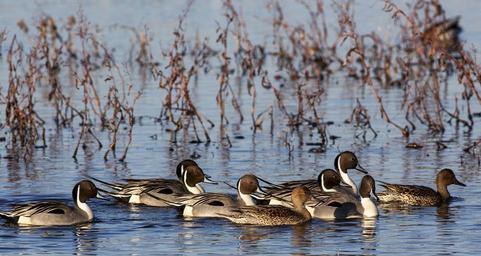 Keywords: pintail ducks swimming wildlife nature birds waterfowl lake pond paddling outdoors wetland fowl water