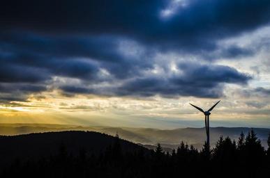 Keywords: pinwheel black forest wind turbine wind power nature rotor blades evening sky brandkopf sunset propeller wind energy rotor environment landscape