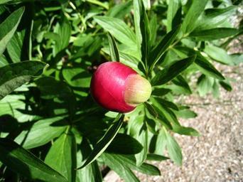 Keywords: pion bud red summer foliage green