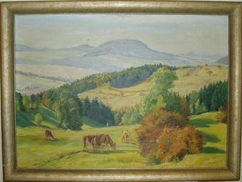 | Keywords: Pippert - Rhönlandschaft mit Kühen bei Unterweid.JPG en Pippert Wilhelm - Rhön-Landscape with Cows to Unterweid Germany Oil on canvas 900 x 660 de Pippert Wilhelm - Rhönlandschaft mit Kühen bei Unterweid Öl auf Leinwand 900 x 660 vom Besitzer des Gemäldes Wilhelm Pippert 1943 50°35 958 ™N; 10°4 454 ™O Landscape paintings Deutsche Maler Pippert Wilhelm Unterweid PD-Art | ||||